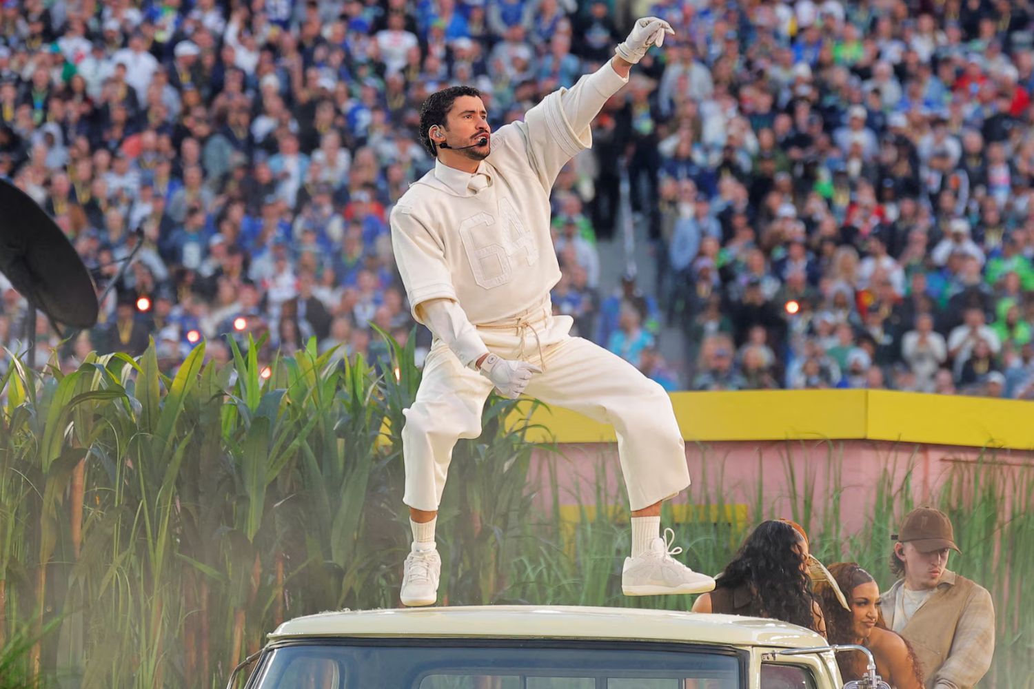 He opened with Tití Me Preguntó and delivered a high-energy medley of career-defining hits, turning the field into a giant dance floor filled with exuberant performers. Over the course of 14 songs, he performed fan favourites from albums like Un Verano Sin Ti and his Grammy-winning Debí Tirar Más Fotos.