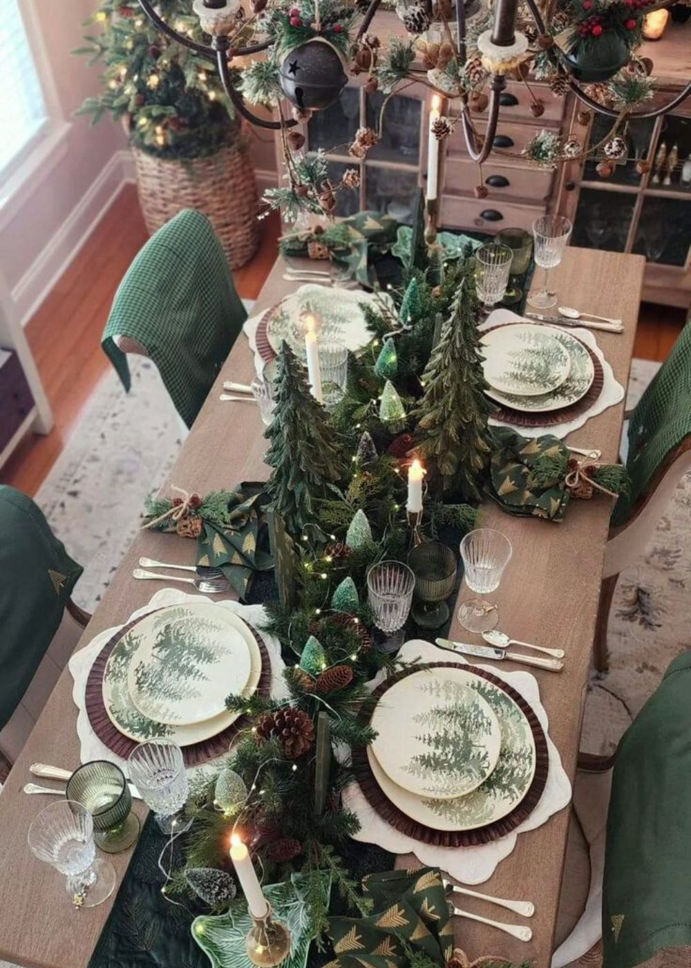 If you’re captivated by elegant, nature-inspired decorating, this theme pairs deep greens, mossy undertones, and earthy neutrals to craft a refined forest feel. Natural woods, woven accents, and forest-themed ornaments introduce subtle texture and warmth, while twinkling lights intertwined with greenery bring the entire look to life. It’s a perfect theme for those seeking Christmas decor inspiration with an elevated woodland touch.