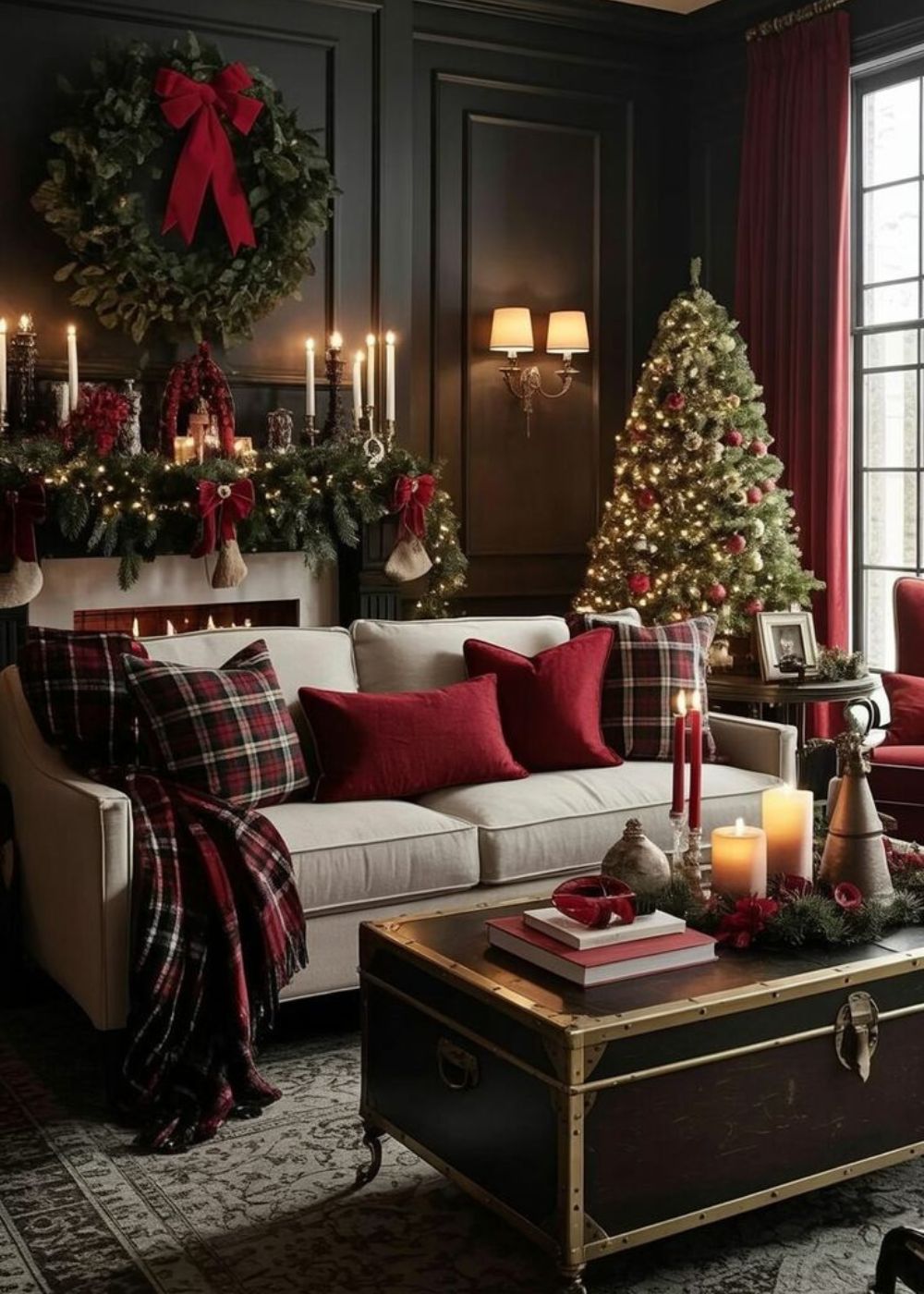 This rustic theme highlights the classic red-and-green plaid for a warm and inviting holiday feel. Flannel ribbons, wooden accents, and wool textures bring nostalgic charm, while warm lighting – like candles and soft fairy lights – enhances the cosy cabin vibe. Add berries, pinecones, and rustic ornaments to complete the look, creating a welcoming and heartfelt holiday atmosphere.