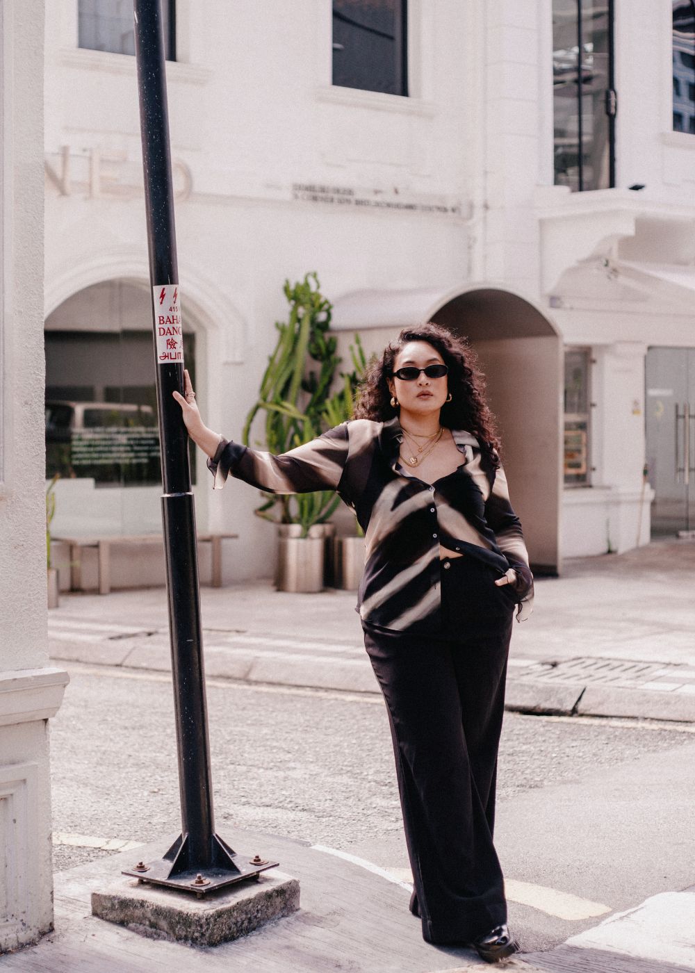 She challenged the status quo as one of Malaysia’s first plus-size models, proving that change begins with representation. Beauty, she insists, should be authentic – embracing big noses, prominent ears, and every perceived “flaw” with the courage to challenge convention. Yet, in Nalisa’s eyes, Malaysia still has a long way to go. For now, everything is picture-perfect, which is far from realistic or relatable. “Fashion is fun, cool, and political, but I don’t see that in Malaysia,” she notes. However, the local fashion industry’s limited acceptance is what makes self-expression all the more important. “I see a lot of potential in the younger generation, especially Gen Z,” says Nalisa. “The younger generation is taking more risks and is more unapologetically themselves. They lean into thrifting and personal style, so I want to see them tear up the fashion industry.”