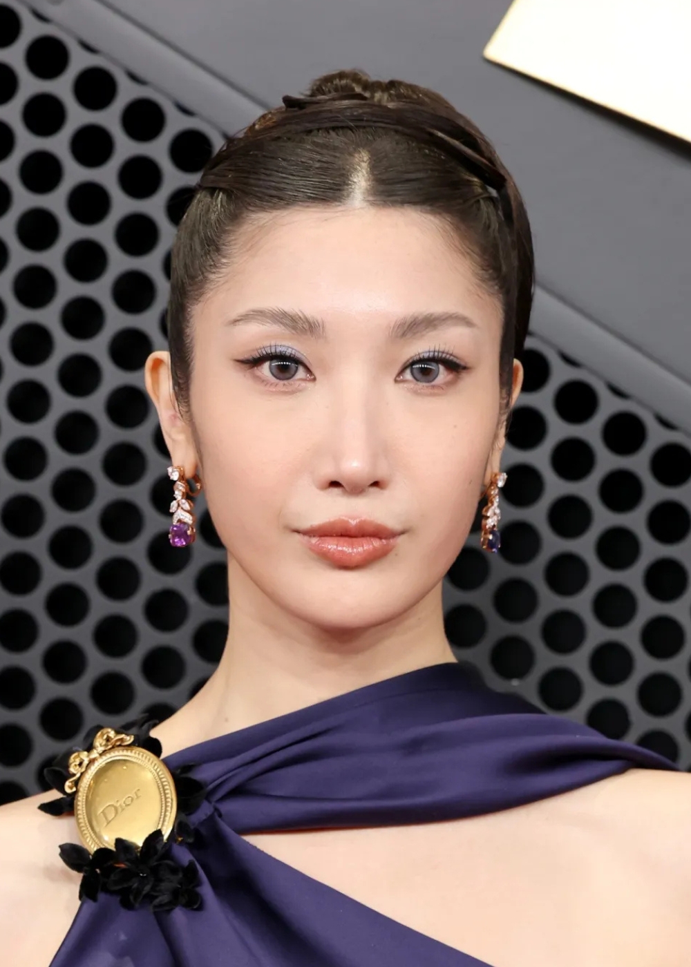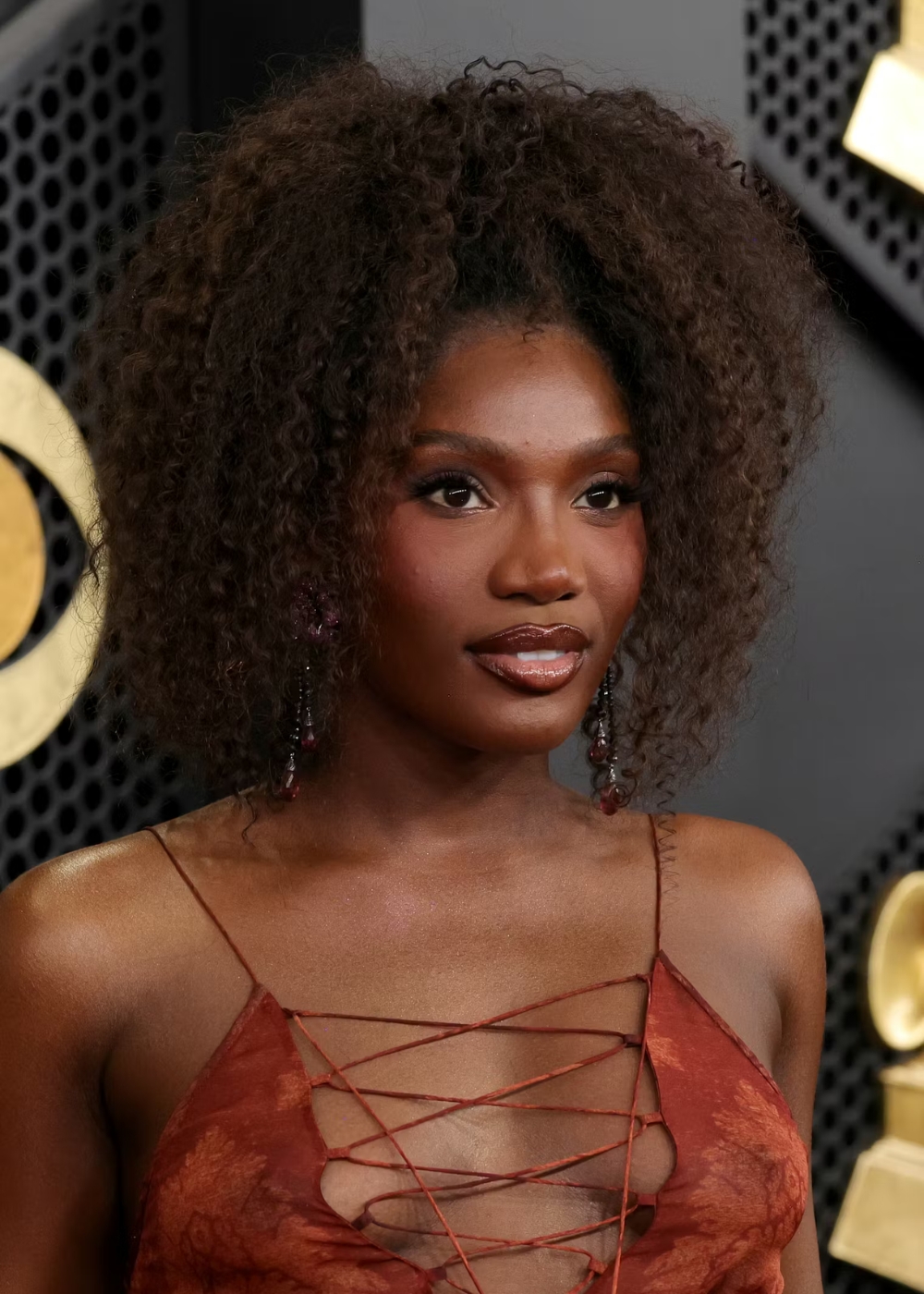 Other standout beauty moments include Sabrina Carpenter’s ethereal light eye makeup paired with a berry lip, and Ejae’s metallic silver eyeshadow that perfectly complemented her grey contact lenses. Tyla embraced effortless texture with wispy lashes and tousled waves, offering a soft, romantic take on red carpet glamour.