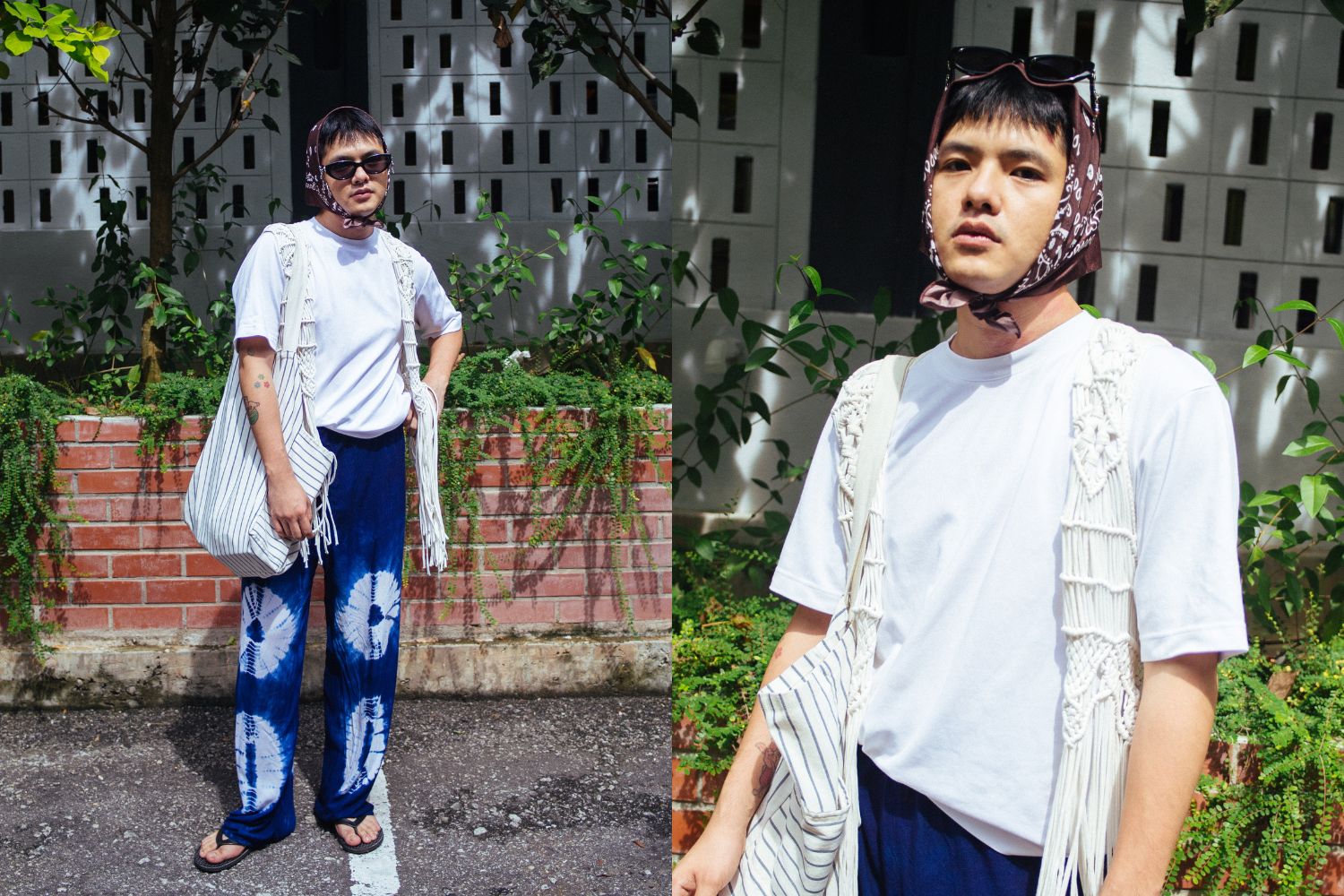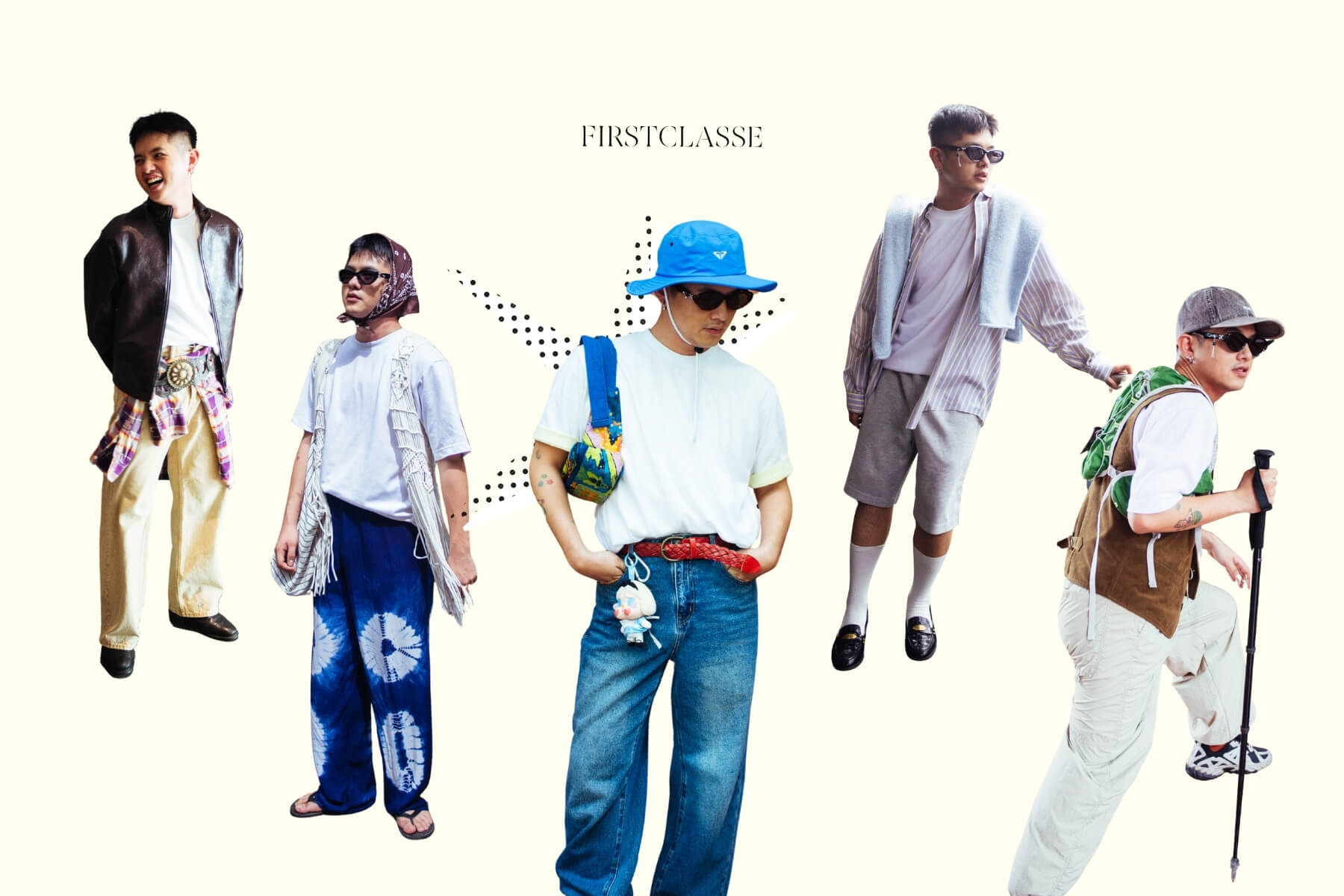 When it comes to brunch outings, Birdy keeps things fun with a vibrant mix of blue hues. He elevates a classic white-tee-and-denim look with accessories: a fisherman hat, a bright bag, and a quirky Cry Baby plush charm for a hint of fun and personality. The ensemble balances effortless comfort with playful detailing, making it perfect for a sunny weekend meet-up with friends or a casual café session.