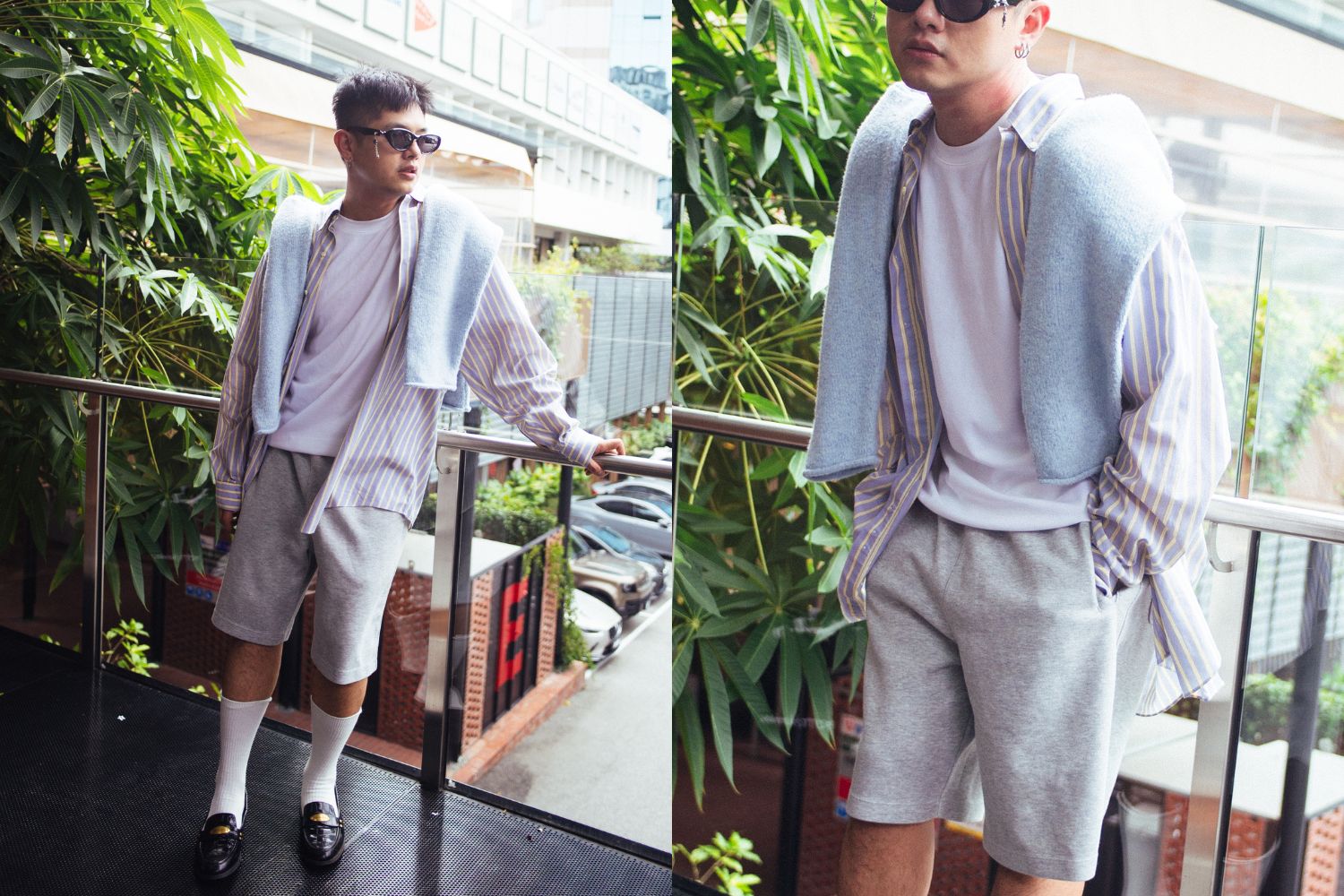 For a long journey on the road, Birdy prioritises comfort without compromising on style. He layers a button-up shirt and a relaxed draped sweater over his white T-shirt, pairing the look with comfy shorts, socks, and loafers. A pair of sunnies completes the ensemble, perfect for cruising in the car while staying cosy and effortlessly put together.