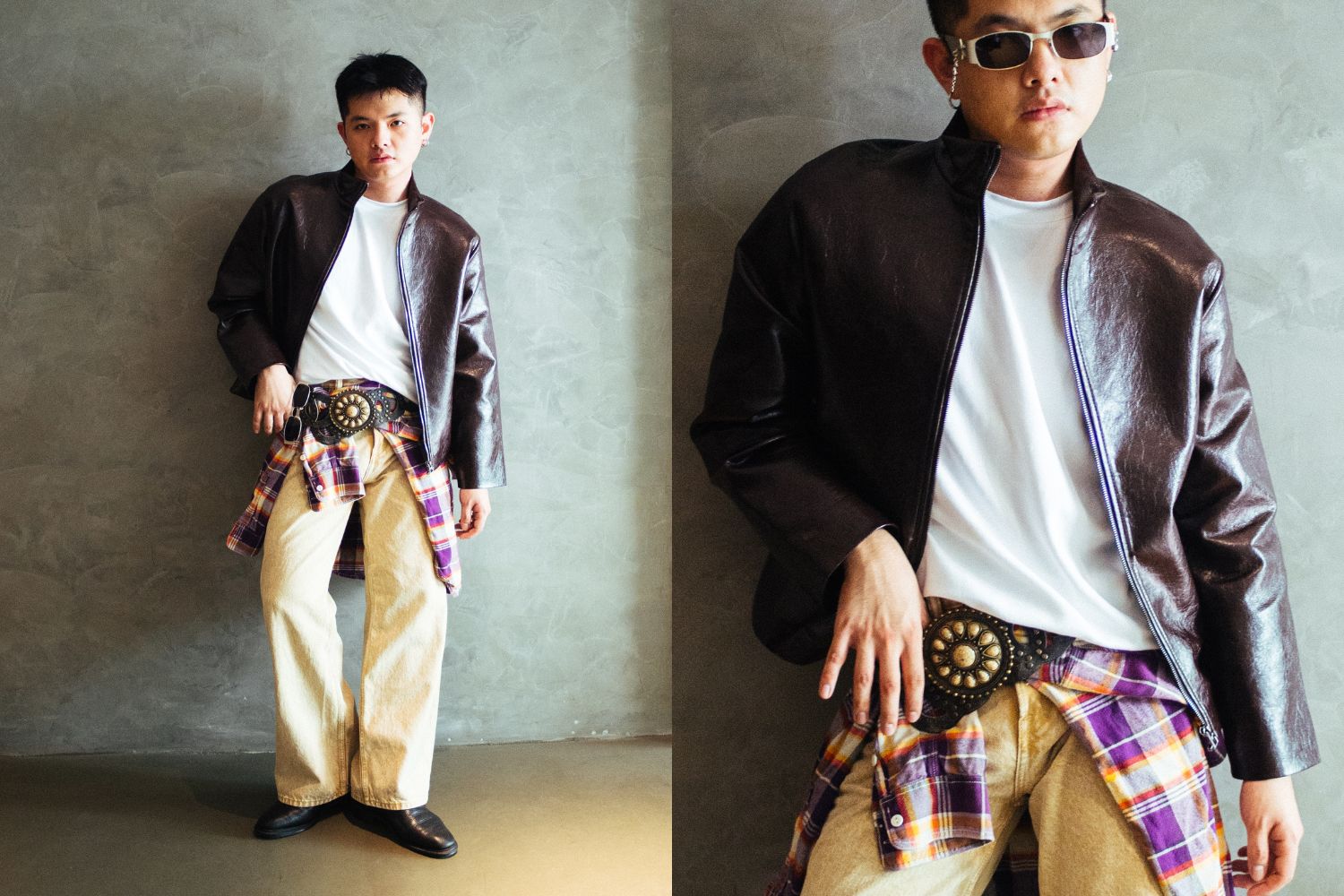 Birdy strikes a bold balance between edgy and bohemian aesthetics for his music festival look. A sleek leather jacket gives the outfit a rock-inspired edge, while a boho-inspired belt adds texture and a hint of free-spirited charm. The look captures the vibrant energy of a music festival, combining practical layering for unpredictable weather with statement pieces that stand out in a crowd.