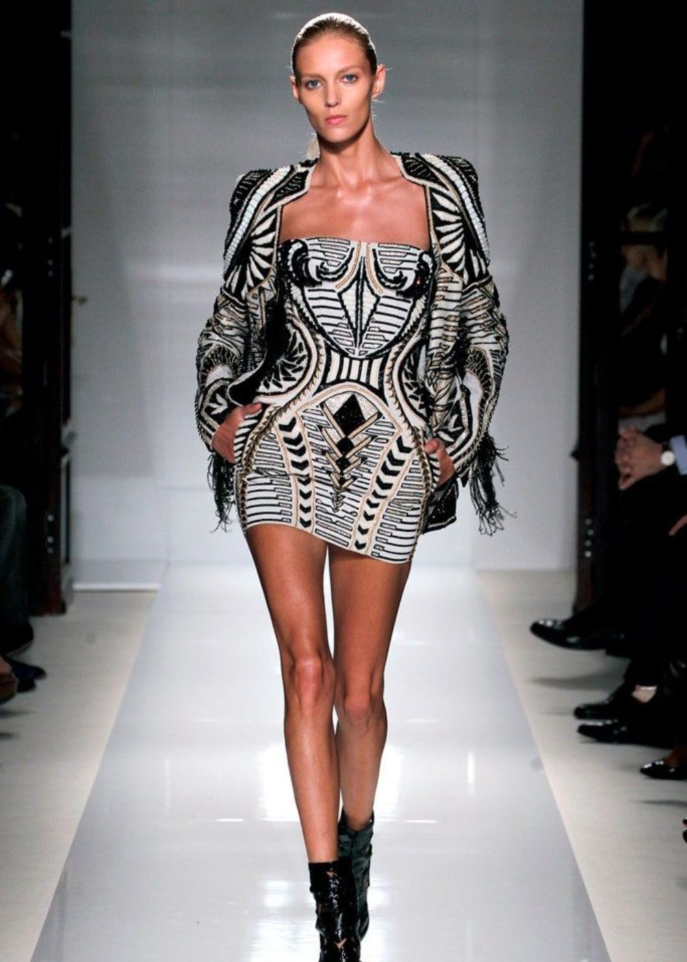 Rousteing’s debut show extended his mentor Christophe Decarnin’s signature heavily embedded designs while imprinting his own essence. His debut collection made a statement: he’s there, loud, and proud – unapologetically bold and cloaked with structure and sparkles. He sparked revenue for Balmain’s name, attracting major fashion muses like Rihanna and Beyonce.