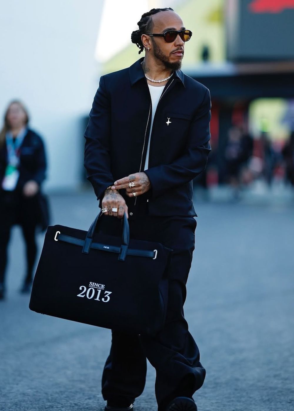 Hamilton proves that men can rock bags too with a rare collection from Rimowa, Dior, Louis Vuitton, and more.
