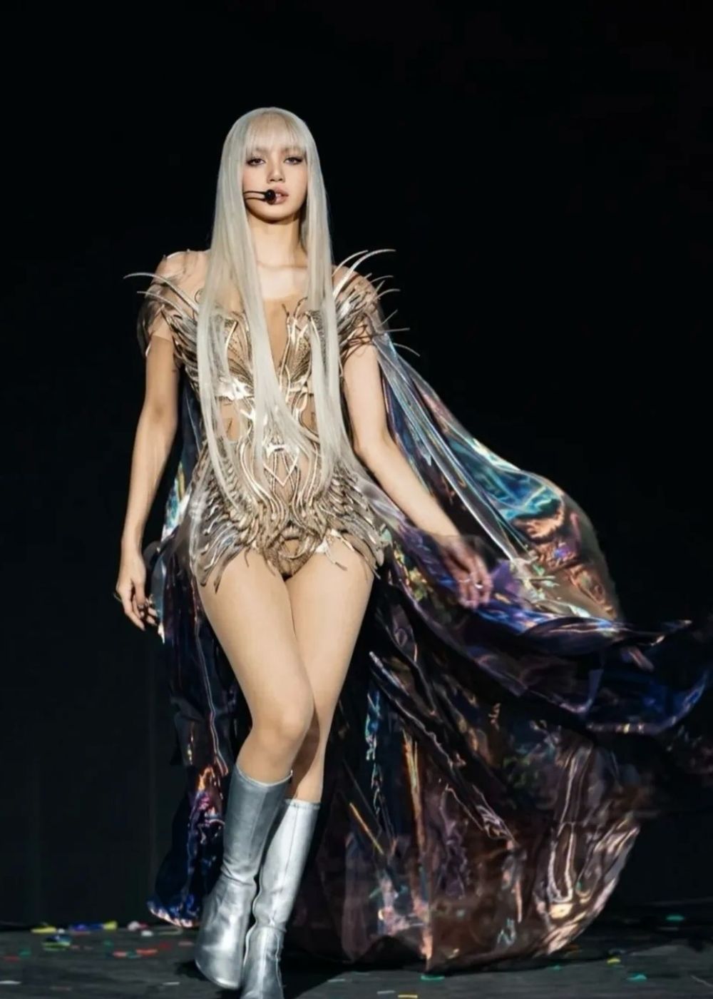Lisa made a striking entrance during her surprise appearance for ‘Bad Angel’ with Anyma. She wore a custom Omen gown by Iris Van Herpen. The Dutch couture house is known to fuse high fashion with technology, and the gown certainly did not disappoint.