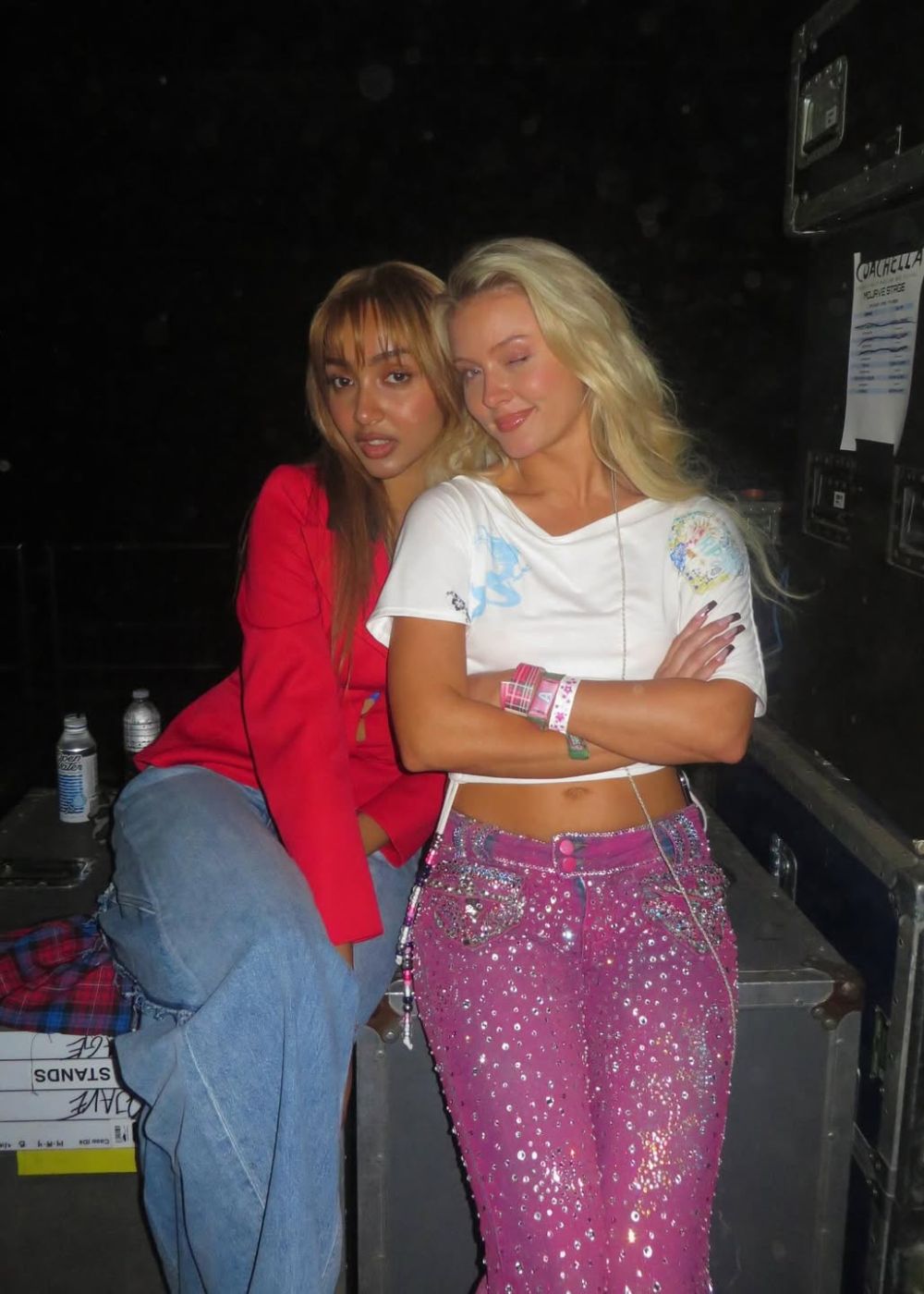 Adding to the list of surprise guests brought out at Coachella week two, Addison Rae invited Olivia Rodrigo to debut her new single, ‘drop dead’, live. Rodrigo stepped out in a custom R & M pink leather bra embellished with a bow and ruffles. The ‘driver’s license’ singer paired it with low-rise denim jeans, resulting in a Coachella-ready Y2K look.