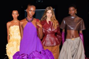 Apparently, the colossal layers were meant to create the effect where “you don’t know where one thing starts and the other finishes” when paired with equally baggy, panelled looks from their new collection.