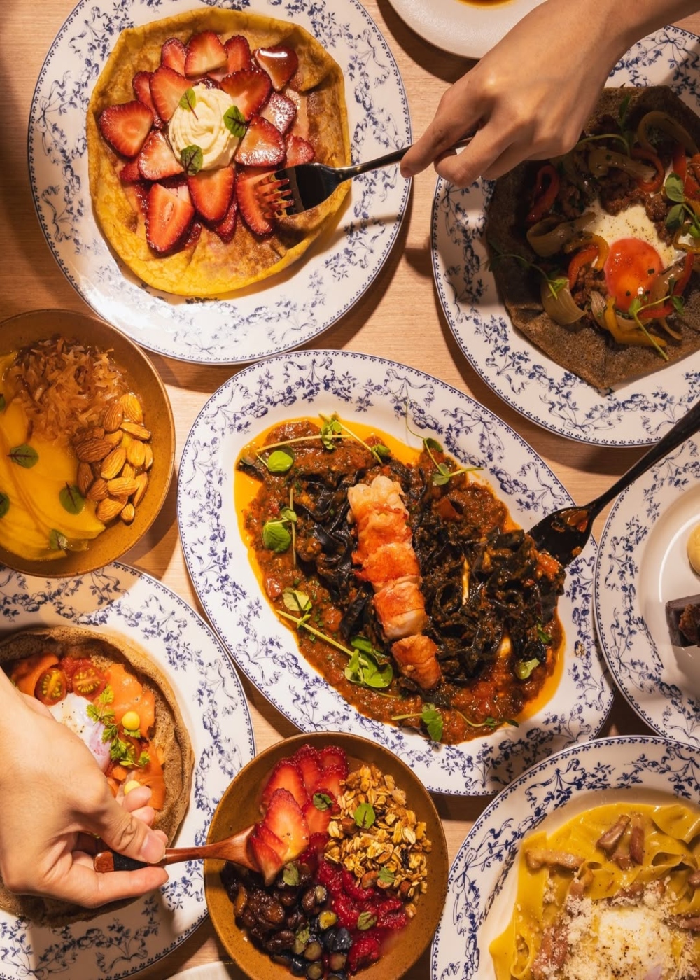 Nestled in a sunlit bungalow on Jalan Delima, Sun & Moon is the newest all-day dining concept by the team behind Eat & Cook and Barkar, seamlessly shifting from bright, breezy brunches to moody, elegant dinners as day turns to night. The space itself is a spectacle, with skylights and a sunken conversation pit by day giving way to glowing red-backlit walls after dusk, while the menu delivers indulgence with polish. Think tiger prawn galettes, creamy short rib risotto, steak frites, and a decadent beef Rossini topped with foie gras. It’s a restaurant that feels just as right for lingering over coffee as it does for raising a glass to the night.